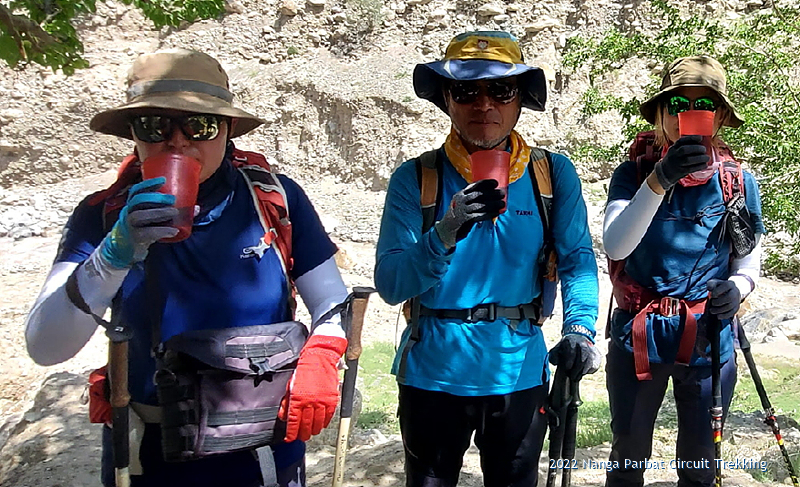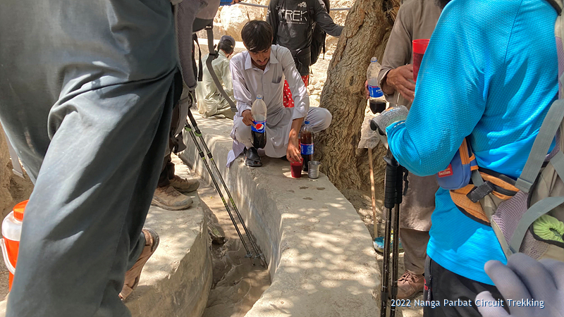 카고백에서 샌들을 꺼내 신고 차고 거센 빙하 계곡물에 발을 담갔다. 찬물 족욕이다. 써니님도 동참한다. 길고 힘들었던 낭가 파르밧 서키트 트레킹이 끝났다. 이제는 마지막 4일 간 운행에 수고한 포터들과 헤어지는 시간이다. 가이드 에싼이 장부에 적인 포터 명단을 보고 호명하면 서란님의 도움을 받아 리더인 작가님이 그 포터와 악수를 하고 팁을 주었다. 주는 사람도 받는 사람도 보는 사람도 즐거운 시간이다.