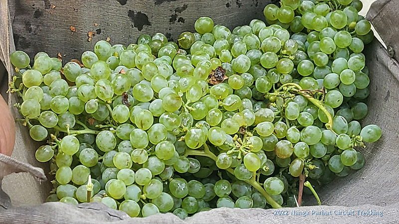 오전 10시 10분, 계곡 옆 나무 군락지에 도착했다. 그늘이 시원하다. 갑자기 수쿠르가 청포도를 가득 따왔다. 큰 나무 옆에 아주 오래된 포도나무 줄기가 있다. 그 포도나무에 달린 청포도다. 이렇게 큰 포도나무는 처음 본다. 모두들 한 송이씩 받아 맛있게 먹었다. 청포도를 보니 이육사의 시 <청포도>가 떠올랐다. 요즘은 어떤지 모르지만 우리 때는 교과서에 실려 있어 모두 외웠다(시험 때문에).