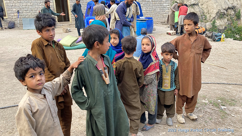 이런 오지에서는 모든 것이 귀하다. 쿠티 갈리에서는 아이들이 주방팀이 다 먹고 내 놓은 빈 깡통까지 주워갔다. 예전 네팔 트레킹 때는 학용품을 가져가 산골 동네 아이들에게 나누어 주었다. 네팔은 이제 그럴 정도의 오지는 드물다. 아니 산간 오지야 지금도 널려 있지만 일반 트레커들이 갈 수 있는 오지는 별로 없다. 그렇지만 파키스탄은, 특히 낭가 파르밧 트레킹 중 들르는 산골 마을은 네팔 오지와는 비교를 불허할 정도로 외로운 곳이다. 미리 알았으면 학용품을 조금 챙겨왔으면 좋았다.