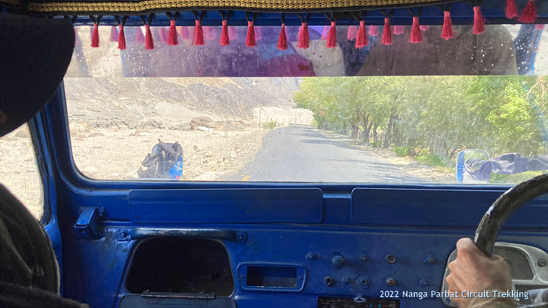 대기하고 있던 두 대의 지프에 나누어 탔다. 앞차에는 가이드와 강경파, 뒷차에는 온건파와 주방팀이 타고 카라코람 하이웨이와 만나는 부나르 다스(Bunar das)로 간다. 역시 아슬아슬한 절벽길이다. 커브를 돌 때마다 스릴이 넘쳐 온 몸이 찌릿찌릿하다. 딤로이에서 부나르 다스까지는 거리가 13km이고 부나르 다스에서 오늘의 목적지 칠라스까지는 23km다.