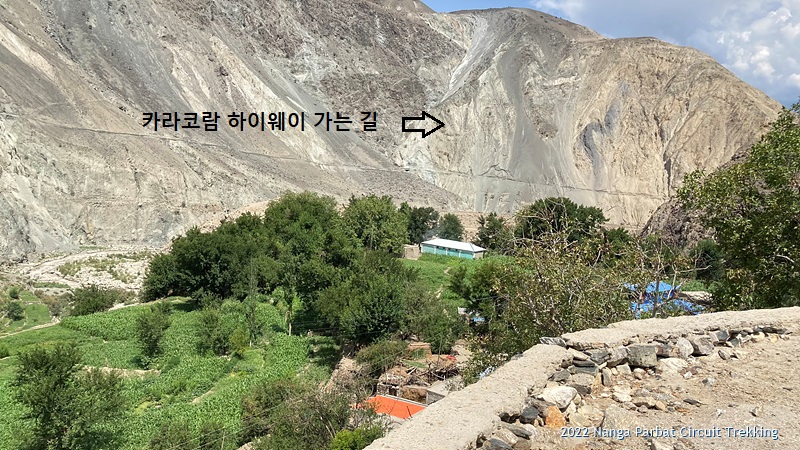 10시 50분. 딤로이 마을 도착. 계곡을 건너 저 길을 통해 내려가 부나르 다스에서 카라코람 하이웨이와 만난다.