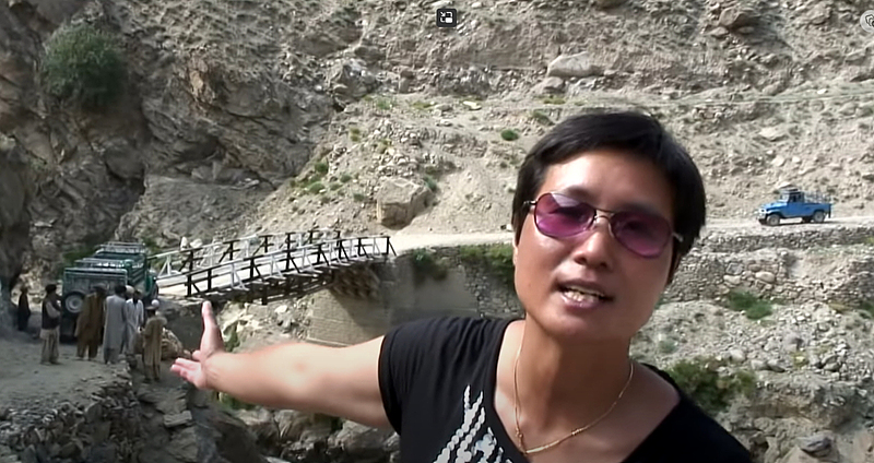2009년 원정 트레킹 시작 전 할랄라 다리를 소개하는 고 고미영 대장(<히말라야 14좌의꿈, 고미영 낭가 파르밧에 잠들다> KBS 방송 캡쳐)