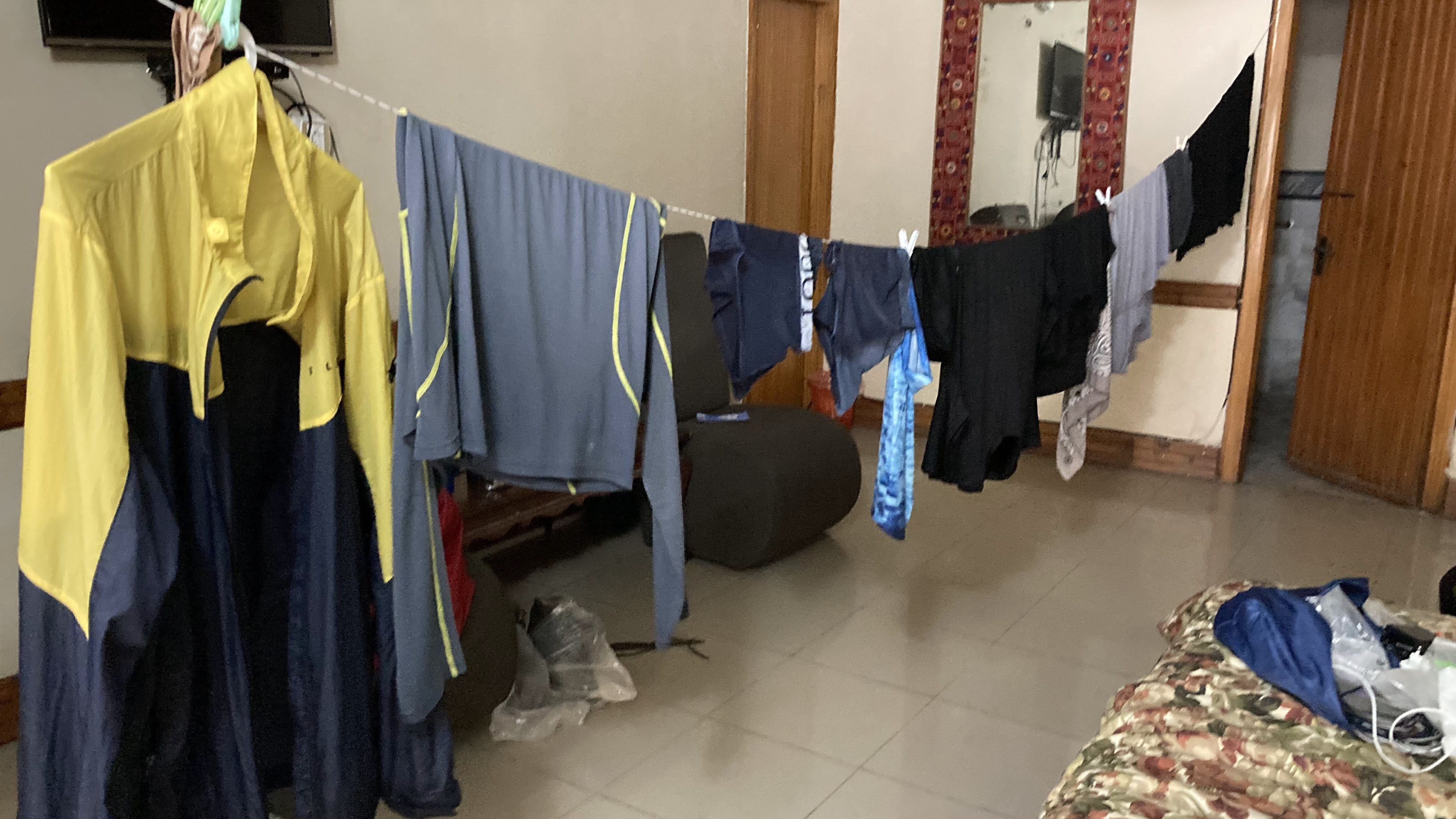 짐이 도착했다. 방에 줄을 치고 빨래부터 해서 널었다가 나중에 바깥 정원 난간에 널었다. 점심을 먹으라는 연락이 왔으나 이상하게 배가 고프지 않고 빨래 하느라 피곤하여 그냥 침대에 누워 쉬었다.