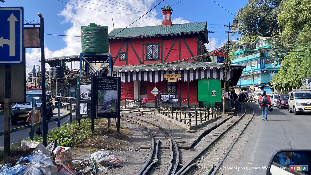 굼 기차역( 2258m). 다르질링으로 가는 중. 철로가 아무런 경계석 없이 차도와 함께 있다.