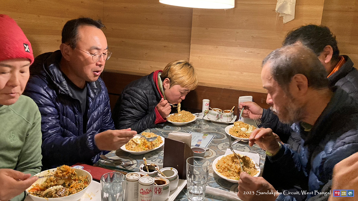 그 부근에 차 파는 가게가 많이 있다. 다르질링 특산품이 홍차이니 여기까지 와서 그냥 갈 수 없다. 큰 찻집 가게에서 차를 시음하고 각자 선물용으로 몇 통 샀다. 저녁은 다시 티베트 식당으로 가서 다르질링 마지막 만찬을 즐겼다. ♣