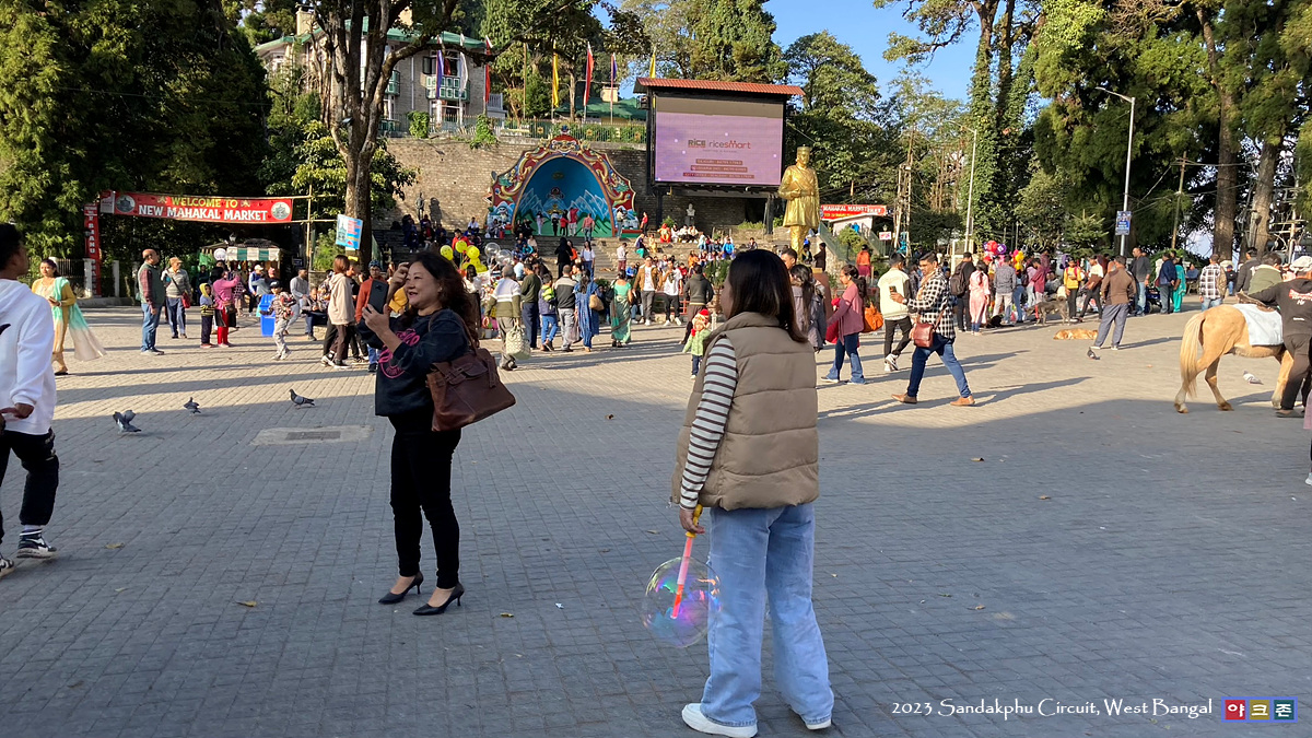 언덕 위에 집들이 빽빽하게 들어차 있는 다르질링에서 넓은 광장은 사람들에게 좋은 휴식처가 되고 있다.