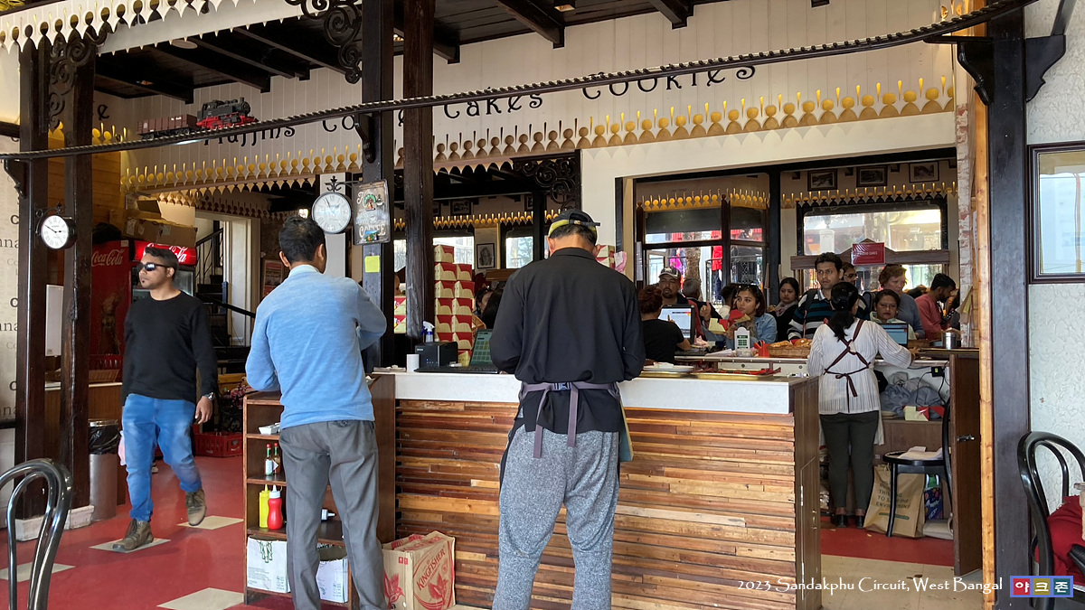 베이커리 코너에서는 갓 구운 케이크와 머핀의 향기가 천국 같은 기분을 선사한다. 한쪽에는 좌석이 배치되어 있으며 다르질링 시내를 조망할 수 있는 개방형 테라스가 있다. 아침 식사를하기에 매우 기이하고 사랑스러운 곳이다.