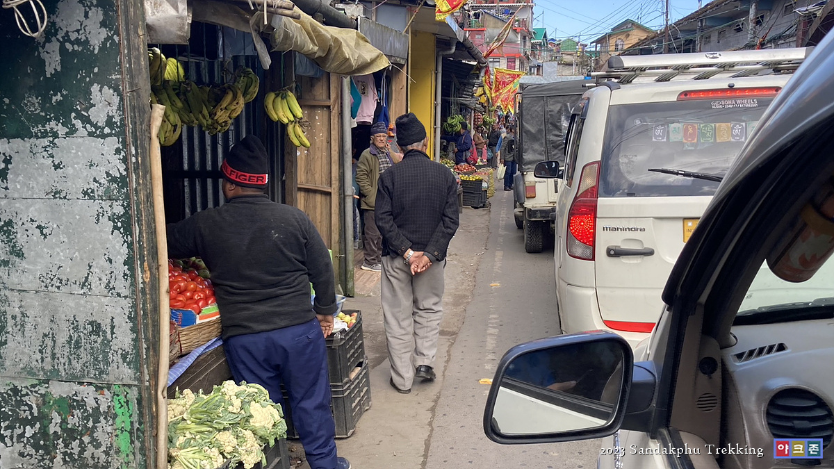 마네반장부터 지나 수키아 포크리(Sukhia Pokhri)에 들어서자 차량 정체가 심했다. 양쪽으로 가게가 있는 시장통 좁은 길이다. 마을은 복잡하지만 조금 떨어진 언덕으로 가면 캉첸중가 산군을 감상할 수 있는 멋진 전망대가 있다고 한다.