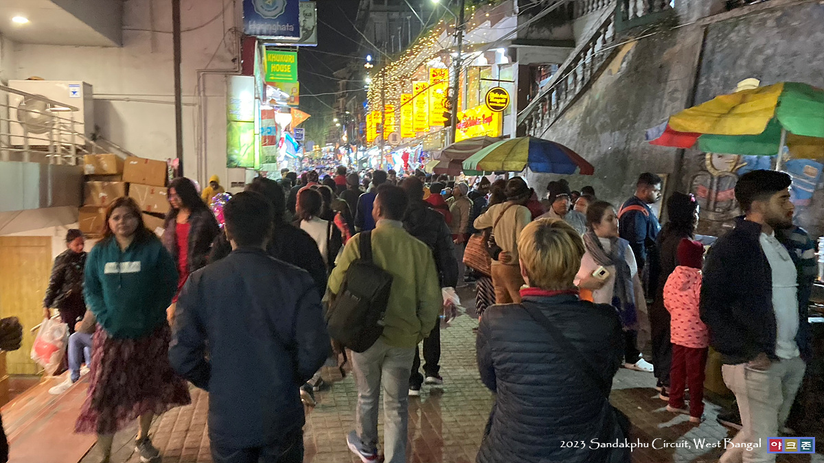 광장 주변은 밤마다 불야성이다. 다르질링에서의 마지막날 밤이다.