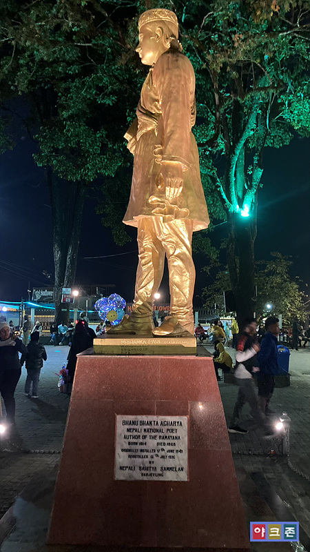 다르질링의 메인 광장인 이 초우라스타(Chowrasta) 광장은 으로 주요 행사장이고 만남의 광장이다. 광장 북쪽에 동상이 서있다. 네팔의 국민시인이라고 하는데 다르질링을 구르카랜드로 부를만큼 네팔계 사람들이 주류를 이루고 있어 이런 동상을 세울 수 있다.