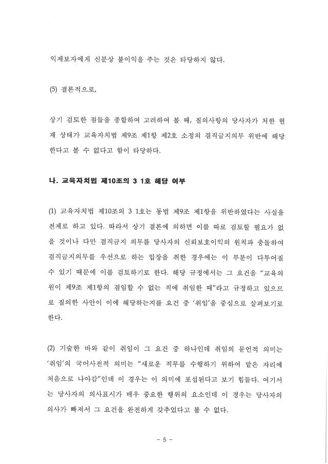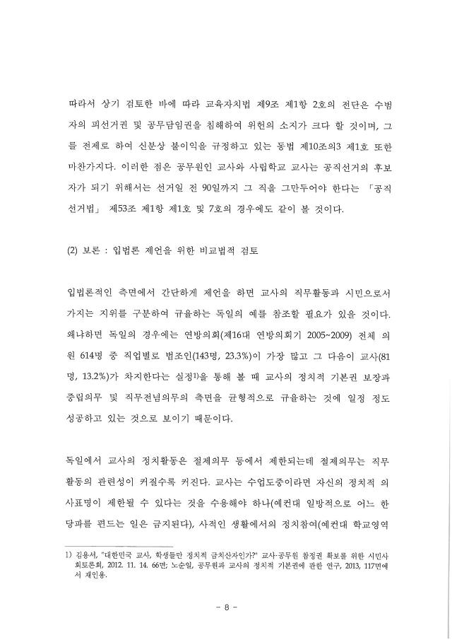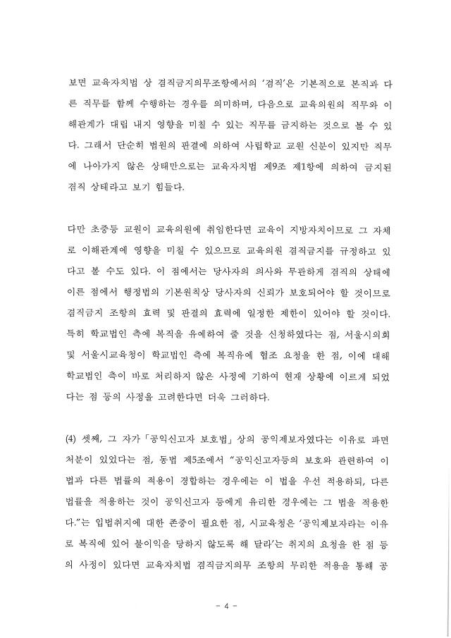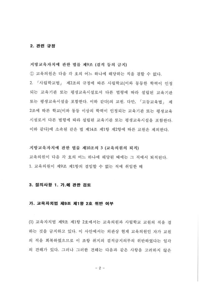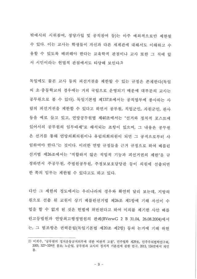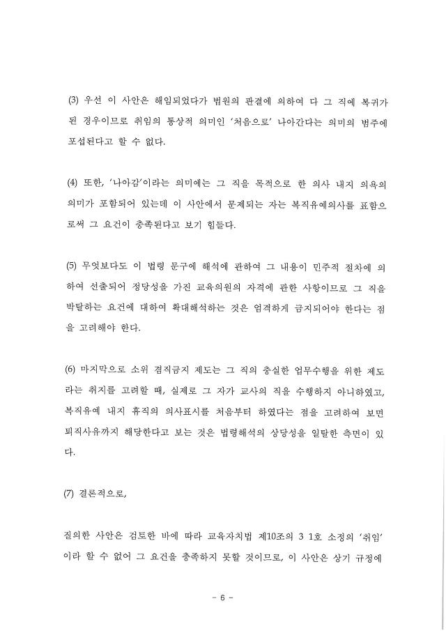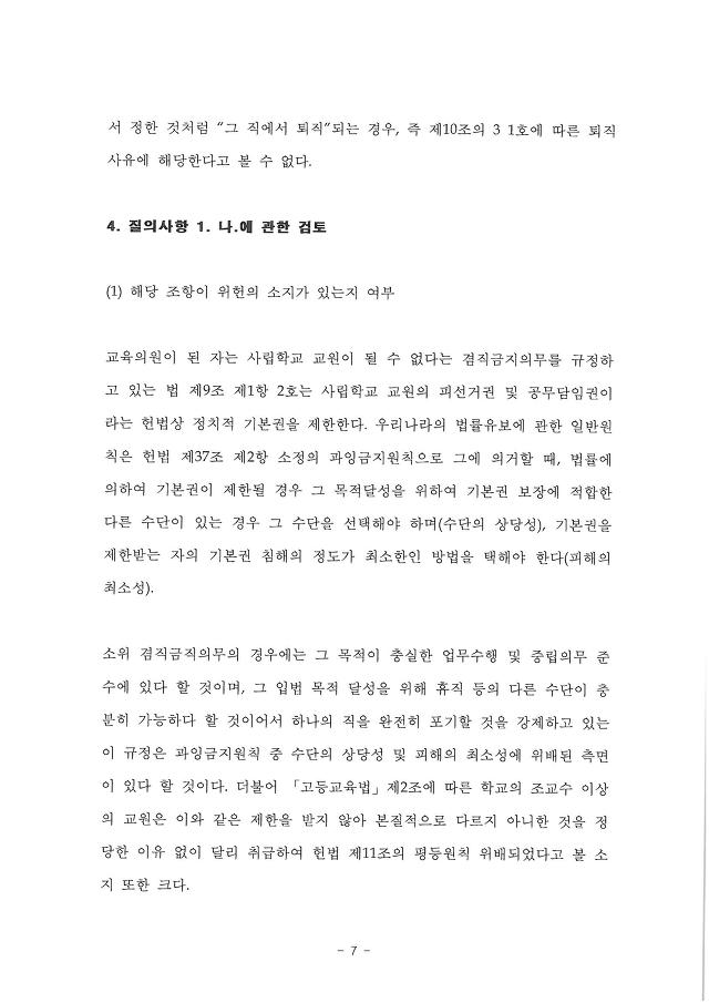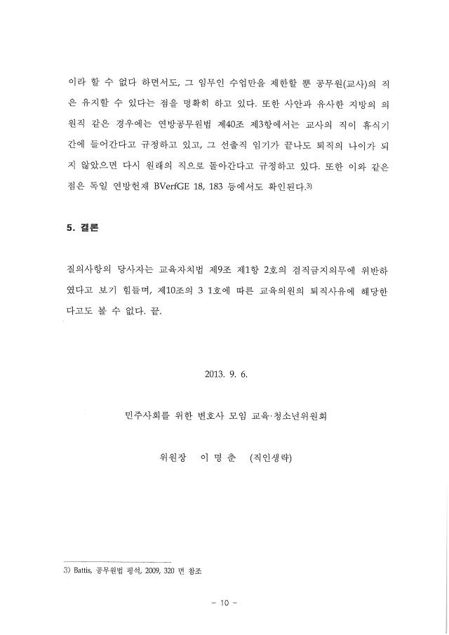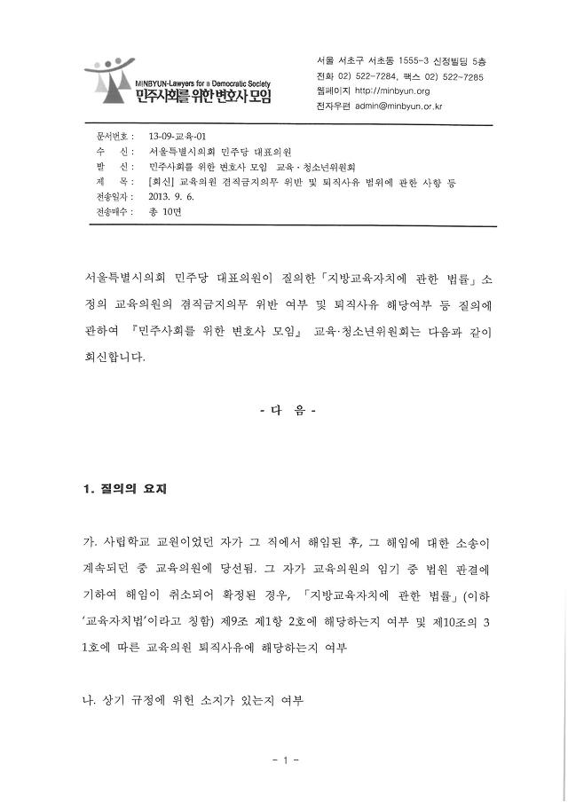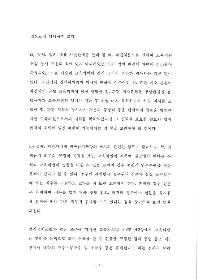 [스크랩] 민주사회를 위한 변호사 모임 - 교육의원 겸직금지의무 위반 및 퇴직사유 범위에 관한 사항 법령 해석 작성자이주현(15회)|작성시간13.09.08|조회수58 목록 댓글 0 글자크기 작게가 글자크기 크게가 (20130906)[민변교육위][질의회신] 교육의원겸직금지의무위반여부등.pdf 첨부파일첨부된 파일이 11개 있습니다. jpg 파일 (20130906)[민변교육위][질의회신] 교육의원겸직금지의무위반여부등_페이지_01.jpg 다운로드 jpg 파일 (20130906)[민변교육위][질의회신] 교육의원겸직금지의무위반여부등_페이지_02.jpg 다운로드 jpg 파일 (20130906)[민변교육위][질의회신] 교육의원겸직금지의무위반여부등_페이지_03.jpg 다운로드 jpg 파일 (20130906)[민변교육위][질의회신] 교육의원겸직금지의무위반여부등_페이지_04.jpg 다운로드 jpg 파일 (20130906)[민변교육위][질의회신] 교육의원겸직금지의무위반여부등_페이지_05.jpg 다운로드 jpg 파일 (20130906)[민변교육위][질의회신] 교육의원겸직금지의무위반여부등_페이지_06.jpg 다운로드 jpg 파일 (20130906)[민변교육위][질의회신] 교육의원겸직금지의무위반여부등_페이지_07.jpg 다운로드 jpg 파일 (20130906)[민변교육위][질의회신] 교육의원겸직금지의무위반여부등_페이지_08.jpg 다운로드 jpg 파일 (20130906)[민변교육위][질의회신] 교육의원겸직금지의무위반여부등_페이지_09.jpg 다운로드 jpg 파일 (20130906)[민변교육위][질의회신] 교육의원겸직금지의무위반여부등_페이지_10.jpg 다운로드 pdf 파일 (20130906)[민변교육위][질의회신] 교육의원겸직금지의무위반여부등.pdf 다운로드 다음검색 스크랩 원문 : 행복한 변화, 새로운 서울교육 (리울 샘 모꼬지) 현재 게시글 추가 기능 열기 북마크 공유하기 신고 센터로 신고 댓글 댓글 0 댓글쓰기 답글쓰기 댓글 리스트