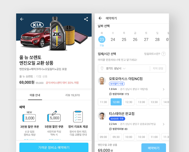 특별히 수리하는 경우가 아니어도 기본적인 차량 소모품을 교환하기 위해 정비소를 방문해야 할 때가 있습니다. 특히 엔진오일은 차를 아무리 운행하지 않아도 적어도 1년에 한 번은 교환해 주는 소모품이죠. 보다 저렴하고 믿을 수 있는 곳에서 엔진오일을 교환하고 싶다면 앱에서 엔진오일 미리 예약하고 방문해보세요.