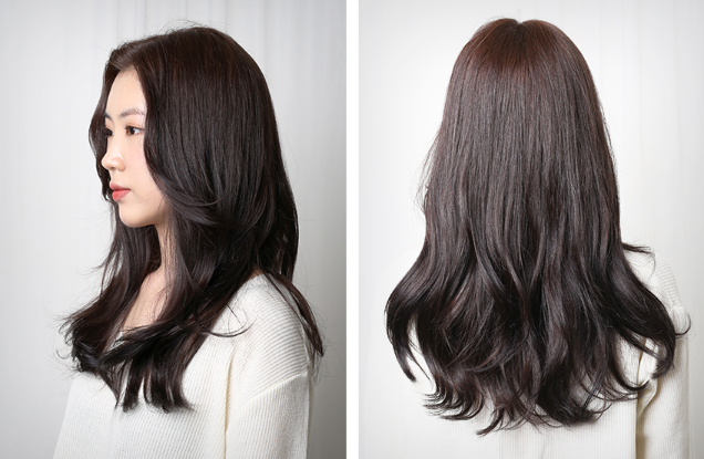 레이어드컷에 연출을 해서 차분한 스타일을 만들었구요~