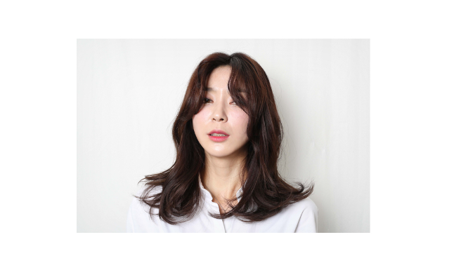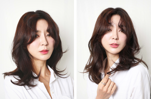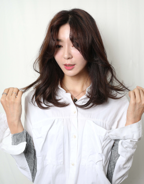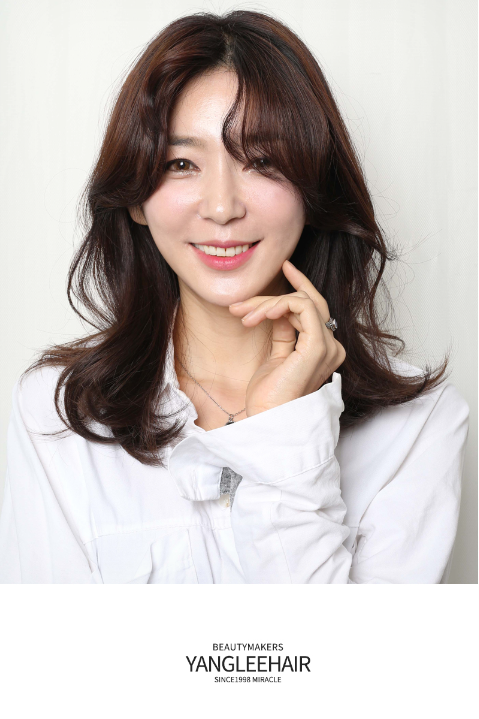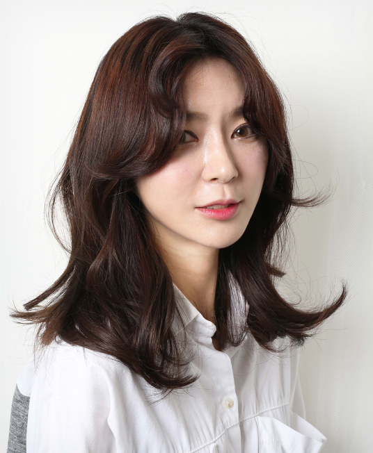 약간의 층을 내어 자연스럽게 흘러내리도록 한 머리에
