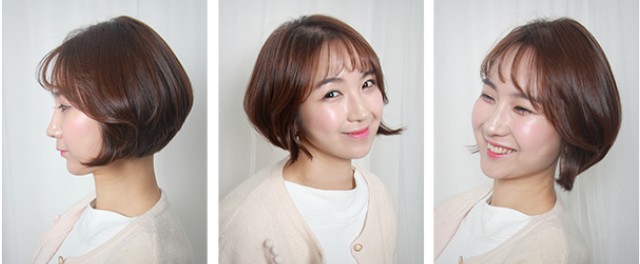 보브컷스타일에 드라이로 볼륨만 살짝 더해주실 경우