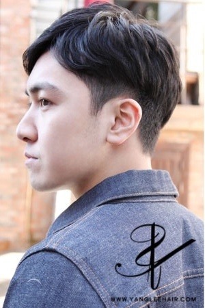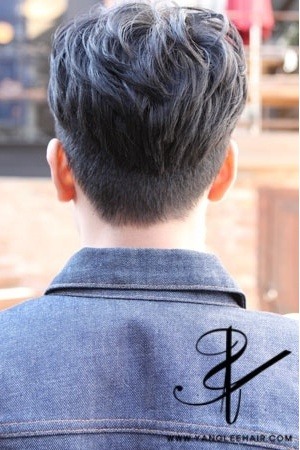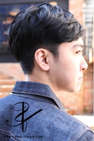 투블럭 라인에 중간 가량의 가르마 스타일의 볼륨매직.