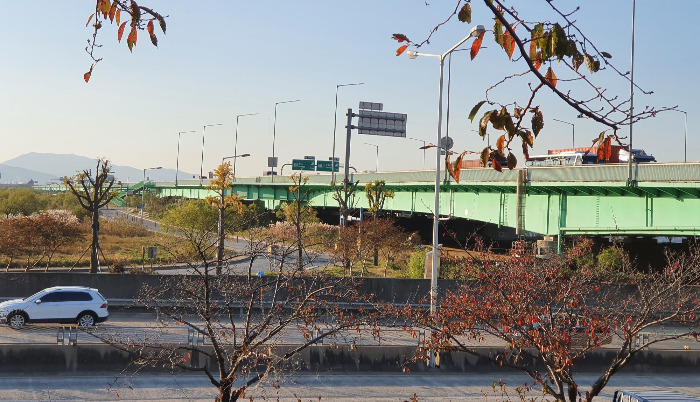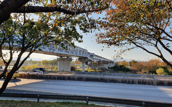 ‘부산-김해경전철’ 교각을 지나고 나서도, 길은 여전히 직선(直線)으로 뻗어있다. 남해고속도로 제2지선인 ‘서부산 낙동강대교’까지는 1.2km를 남겨두고 있다. 길목은 지금까지와 같은 가을풍경을 지니고 있다. 오후 4시가 넘어가고 있었다. 서쪽으로 기울어진 가을해가 가로수 길에 은은한 햇살을 뿌리고 있다. 다니는 사람도 많지 않은, 참으로 고즈넉한 분위기이다. 혼자서 가는 길, 길 위에서 길을 생각한다. 그 동안 짧지 않은 인생을 살아왔지만, 모두 내 인생(人生)의 길이었다. 아름답고 보람찬 길도 있었지만 곡절도 많았고, 길이 아닌 길에서 방황을 하기도 했다. 지나고 보면 스스로 잘못 선택한 길도 있어 남몰래 가슴앓이를 한 적이 한두 번이 아니다. 길 위에서 내 인생의 길을 생각한다. 내 앞에 있는 이 길은, 내가 청산(靑酸)으로 가는 날까지 또 걸어야 할 길이다.