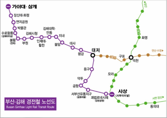 오후 3시 43분, ‘부산-김해 경전철’ 낙동강 철교 아래를 지났다. ‘부산-김해 경전철’은 이곳 부산도시철도 2호선 사상역-괘법르네시떼역에서 낙동강을 건너 김해국제공항을 경유하여, 구포역에서 낙동강을 건너온 강서구 대저역(부산도시철도 3호선 종점, 환승역)을 지나, 김해의 김해시청, 수로왕릉역, 박물관역, 종점인 김해시 삼계동·가야대 입구역까지 총 21개 역으로 이어지는 지상[高架]의 철도이다. 두 량의 열차가 운행되는데, 총 운행소요시간은 38분이다.