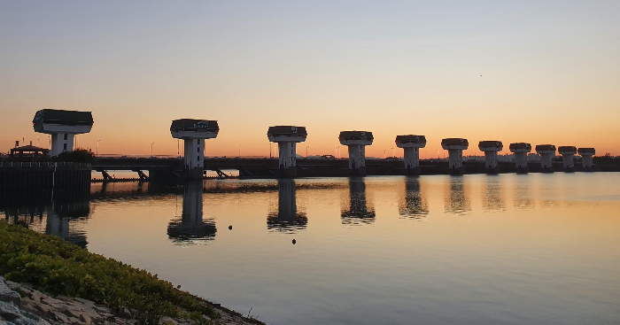 오후 5시 30분, 드디어 ‘낙동강하구둑’ 교량 입구에 도착했다. 낙동강 1300리 종주 대장정! 강원도 태백에서 여기까지 520km, 1300리요, 안동댐을 기점으로 하여 바이크로드는 385km, 940리, 영강이 유입되는 상주의 사벌면 퇴강리에서 ‘낙동강 700리’라 했다.