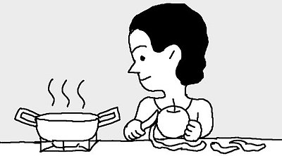 거무스름해진 알루미늄 냄비는 사과 껍질을 넣고 센 불로 끓이면 깨끗해진다. 이때 사과잼을 함께 만들면 일석이조. |
