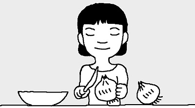 양파 껍질을 깔 때 뿌리 부분을 가장 나중에 잘라내면 눈이 맵지 않아 좋다. 찬물 속에서 벗기는 것도 도움이 된다. |
