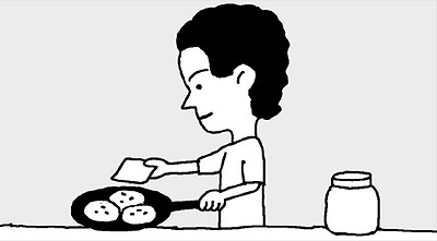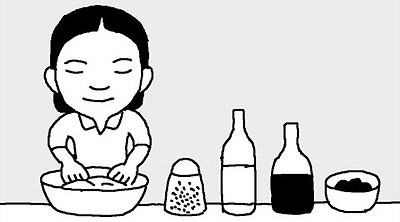 때가 탄 와이셔츠의 목과 소매 둘레에 하얀 초크를 문지른 뒤에 세탁하면 깨끗해진다. | 함박스테이크에 치즈를