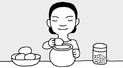 달걀을 삶을 때 식초와 소금을 조금 넣으면 달걀 껍데기에 금이 가지 않고 매끈하게 삶아지며 잘 벗겨진다. |