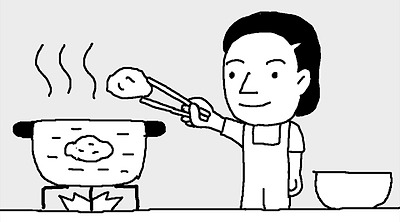 때가 탄 와이셔츠의 목과 소매 둘레에 하얀 초크를 문지른 뒤에 세탁하면 깨끗해진다. | 함박스테이크에 치즈를