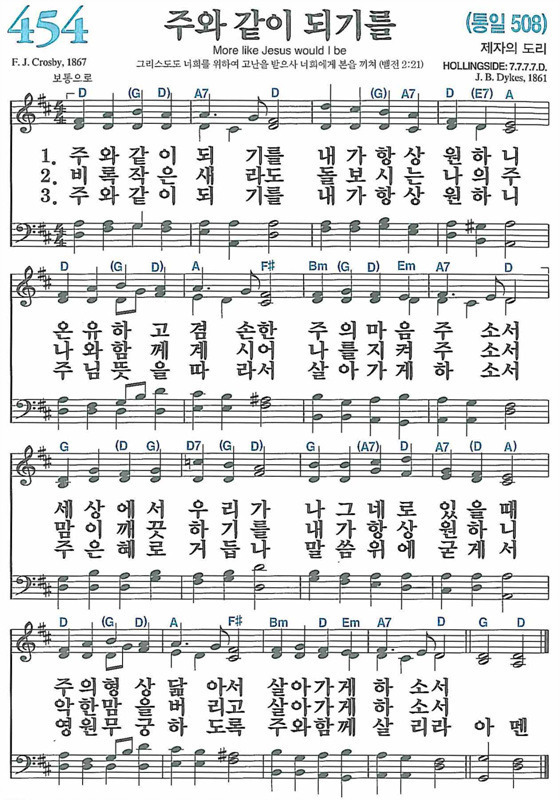 *찬송가 454장(통508)주와 같이 되기를