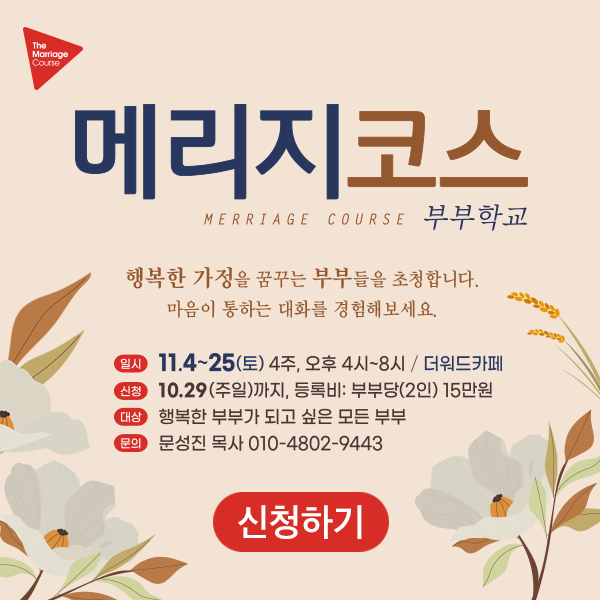 *메리지코스(부부학교) 11.4(토)-25(토) 4주, 오후4-8시