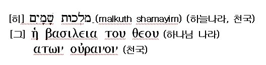 '천국' 또는 '하늘 나라' - 헤 바실레이아 톤 우라논 (마태복음)