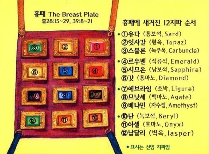대제사장의 옷 가운데 하나로 이스라엘의 열두 지파의 이름이 기록된 12보석이 붙어 있다