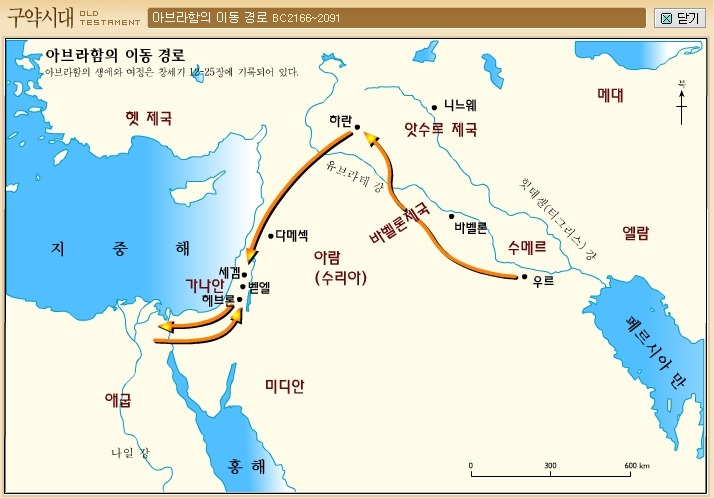 [성서지도] 구약시대 - 아브라함의 이동 경로(BC2166~2091) : 우르(수메르제국)-하란(앗수르제국)-다메섹-가나안(세겜/벧엘/헤브론/브엘세바)-애굽-가나안 작성자안현상|작성시간12.03.22|조회수5,443 목록 댓글 0 글자크기 작게가 글자크기 크게가 다음검색 현재 게시글 추가 기능 열기 북마크 신고 센터로 신고 댓글 댓글 0 댓글쓰기 답글쓰기 댓글 리스트