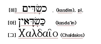 [히] 그림참조 (kasdim), pl. [아] 그림참조 (kasda'in) [그] 그림참조 (Chaldaios)