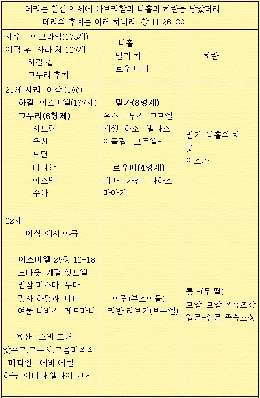 이끌고 가나안 땅으로 들어갔다(창 12:5). 이때 나홀의 가족은 하란 땅에 남았던