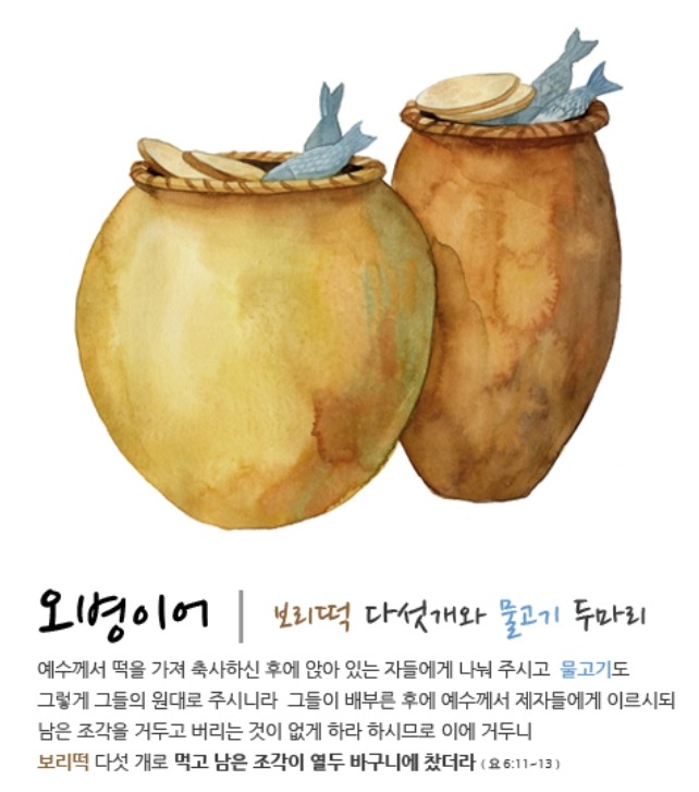 13 이에 거두니 보리떡 다섯 개로 먹고 남은 조각이 열두 바구니에 찼더라