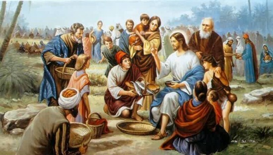 하늘을 우러러 축사하시고 떡을 떼어 제자들에게 주시매 제자들이 무리에게 주니