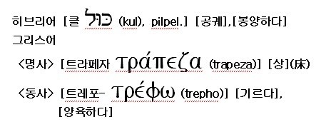 이웃에 대한 사랑은 신앙에서 나오는 행위이기 때문이다. [공궤]로 역되어 있는 히브리어는 [그림참조 pilpel.]인데 (창 47:12,삼하 19:32,33,왕상 17:9), [봉양하다](창 45:11,룻 4:15)로도역되어 있는 말이다. 그리스어 명사 [트라페자 travpeza(trapeza)](행 6:2)는, [상](床)으로 많이 역되어 있는 말이고(마 15:27,21:12기타), 동사 [트레포- trevfw(trepho)]는 [기르다](마 6:26,눅 12:24), [양육하다](계 12:6,14) 등으로 역되어 있다.