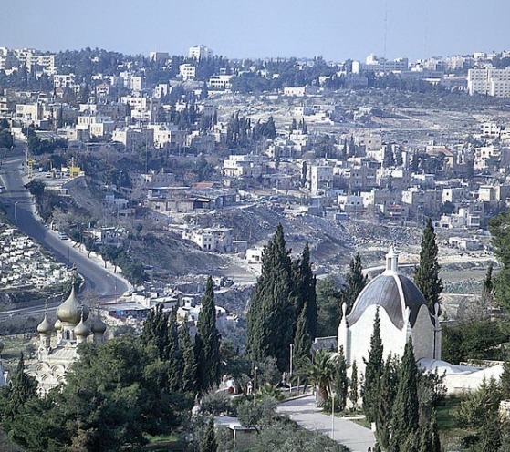 예루살렘 동쪽에는 해발 830m의 감람 산이 남북으로 자리하고 있으며, 북쪽을 제외하고는