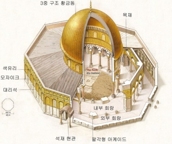 * 엘 악사사원(엘 아크사사원). 성전산 남쪽에 위치한 은색 둥근 지붕의