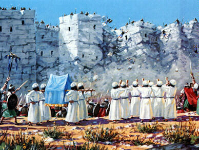 일곱 바퀴를 돌며 나팔을 불고 고함을 지르자 성이 무너졌다(수 6:12-25).