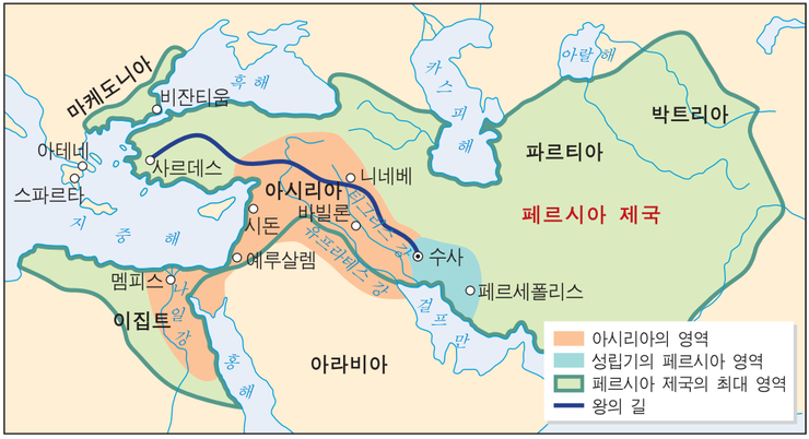 :바벨론 반대편 티그리스 강 동쪽에 위치 수도 수사(수산)