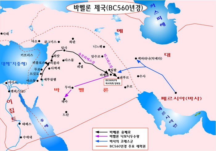 바벨론(Babylon/신바빌로니아/칼데아제국), 바사(Persia/페르시아), 메대(Medes/메디아왕국), 엘람(Elam)