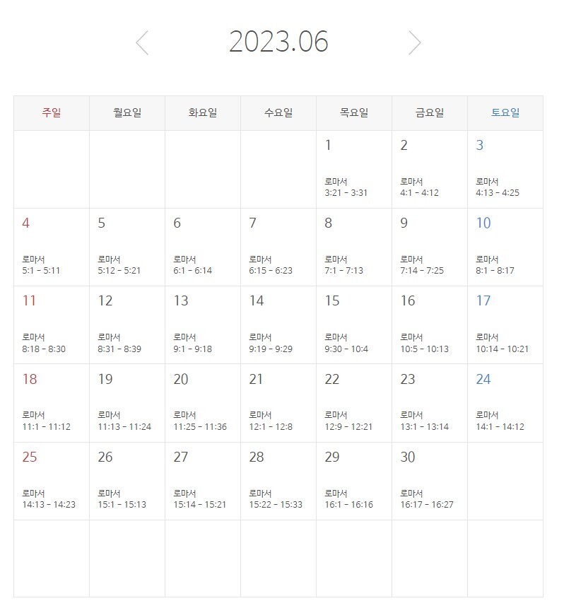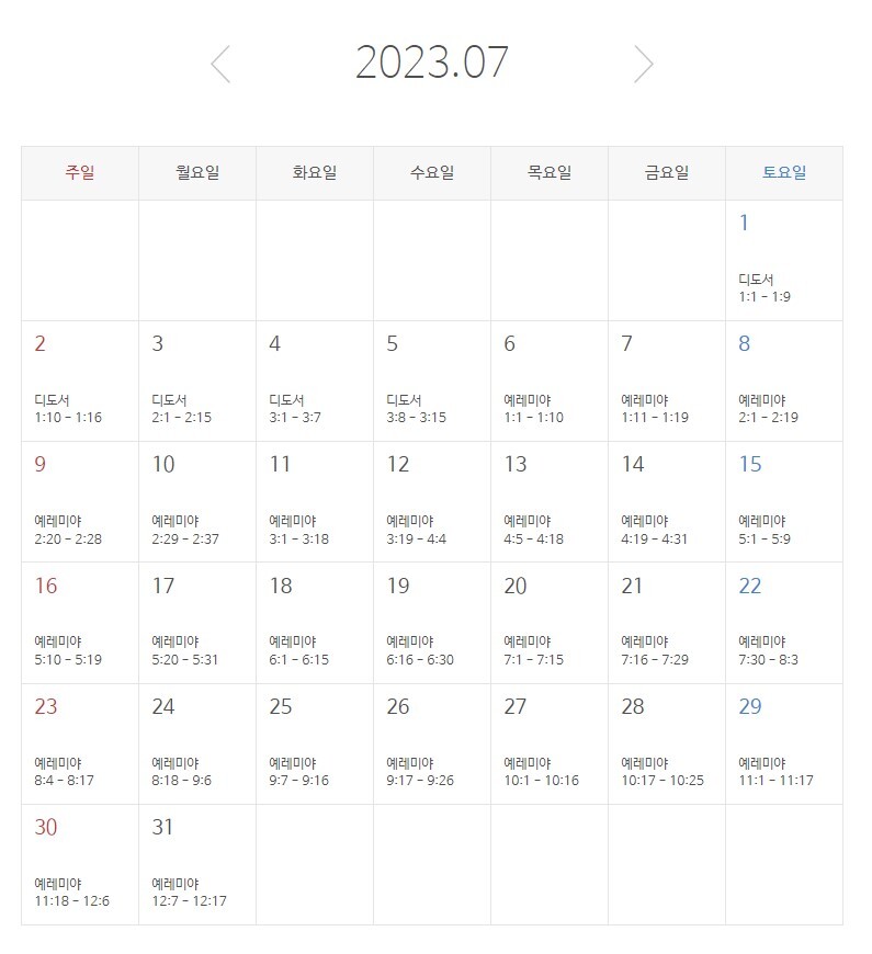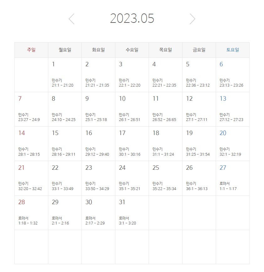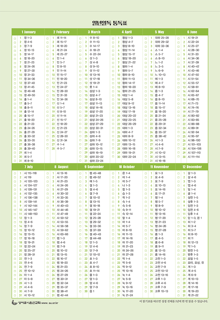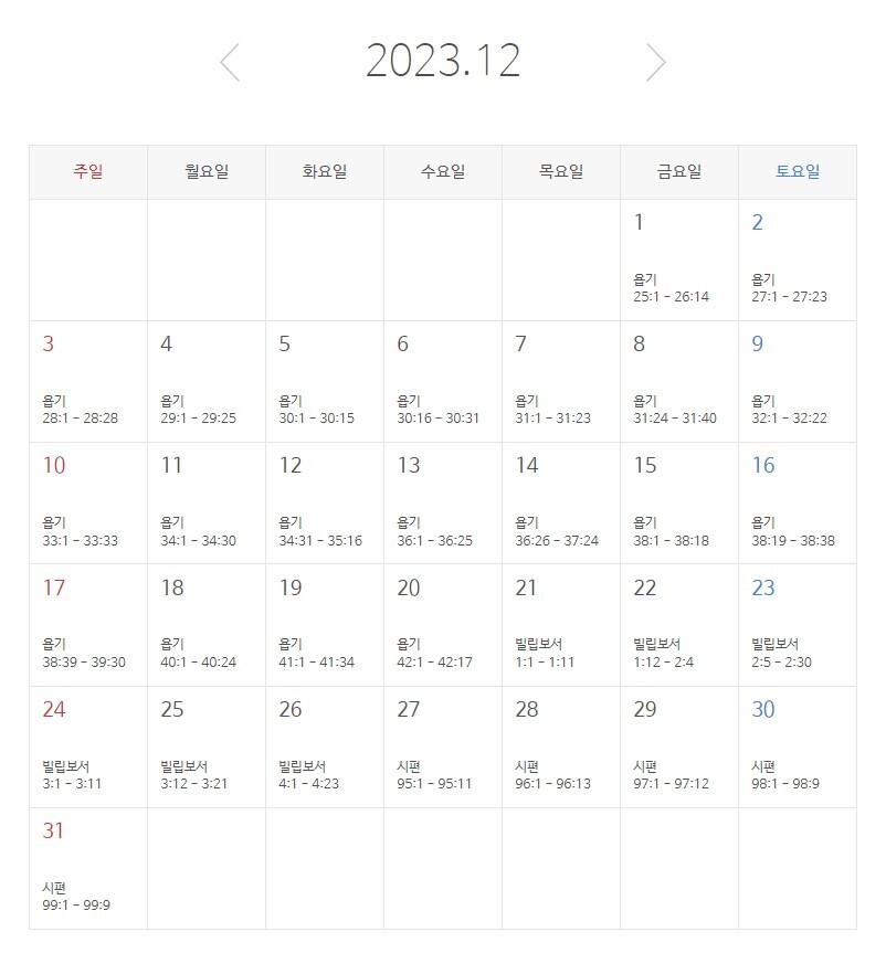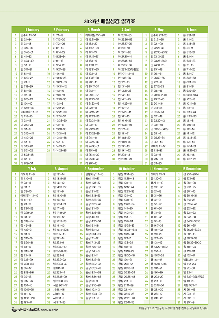 2023년 매일성경:매일성경읽기표(월별 경건읽기표)
