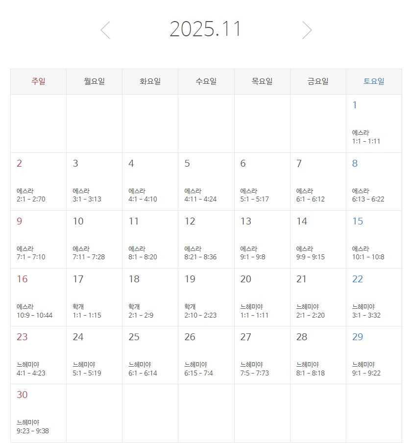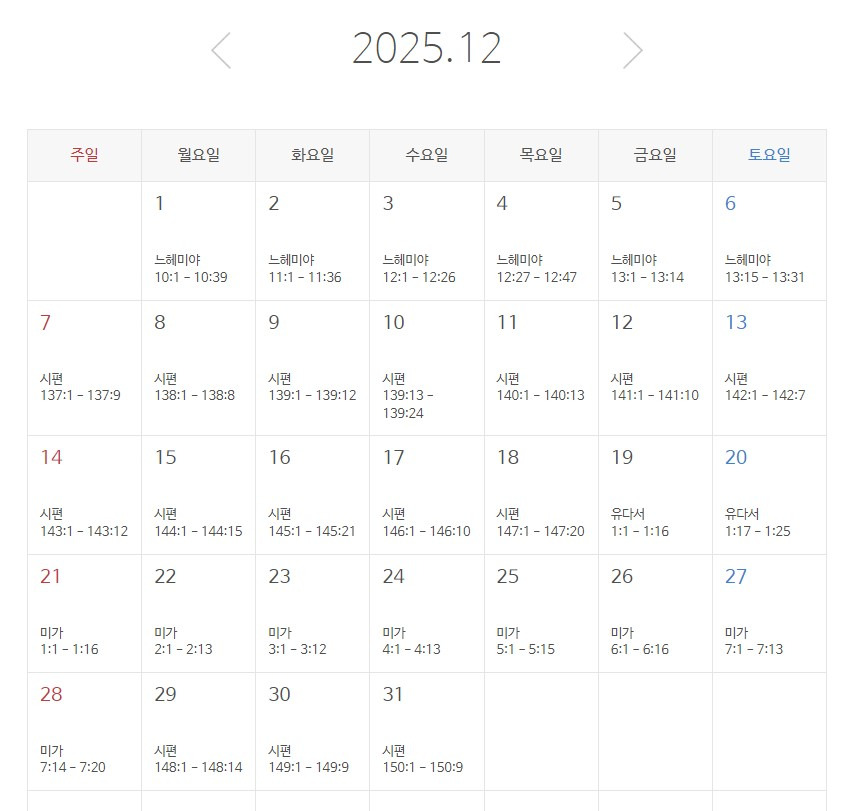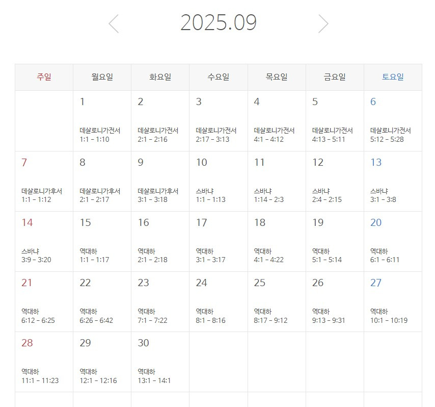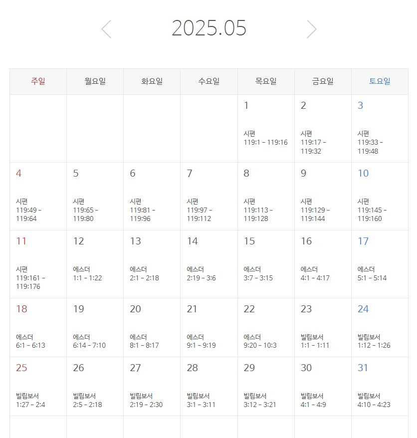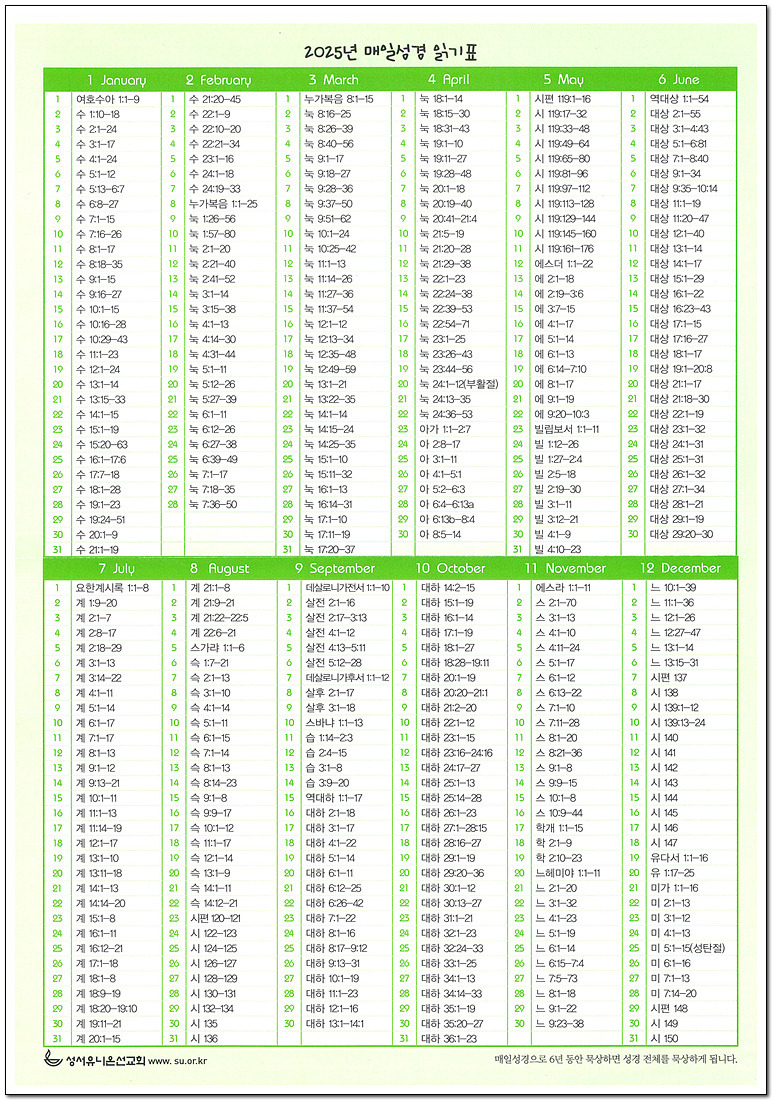 2025년 매일성경:매일성경읽기표(월별 경건읽기표)