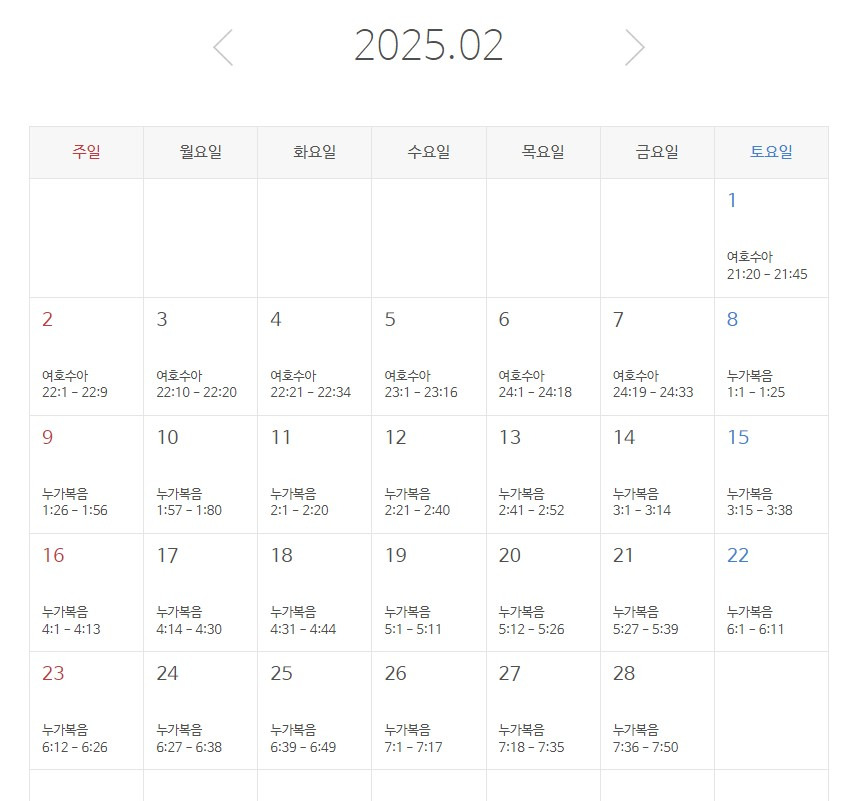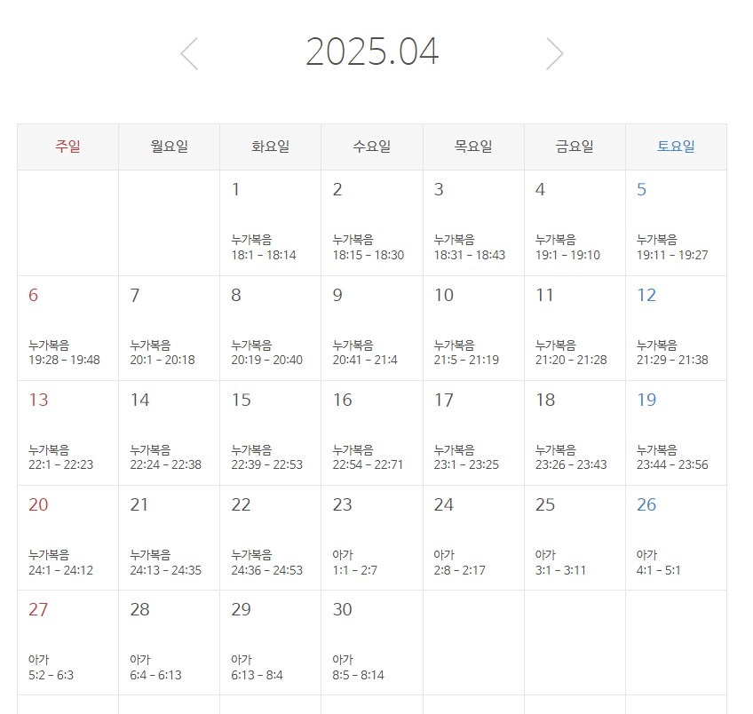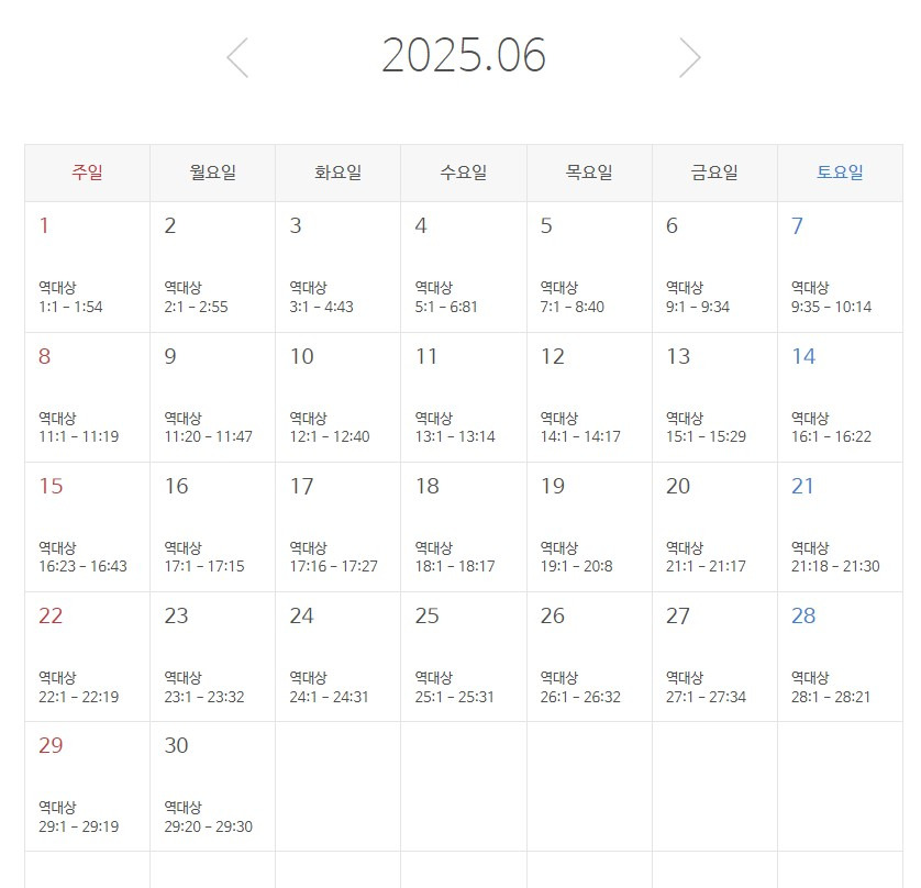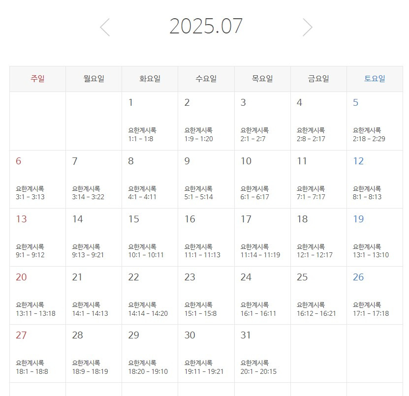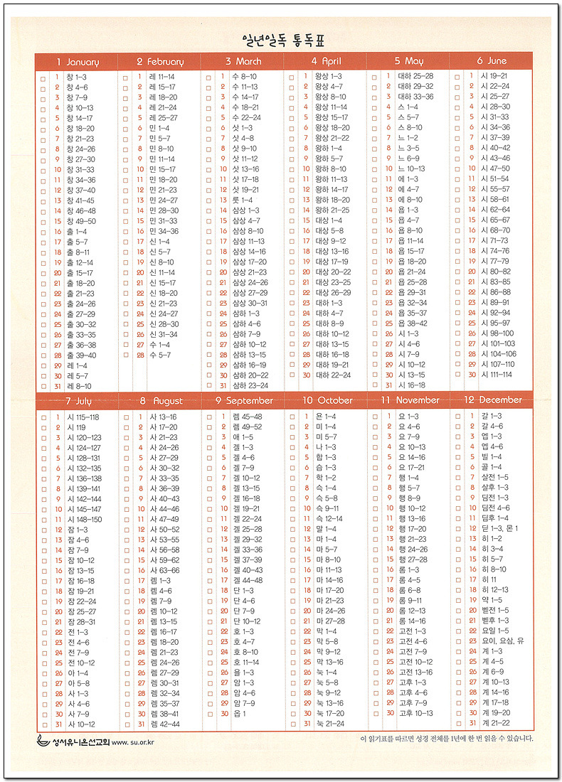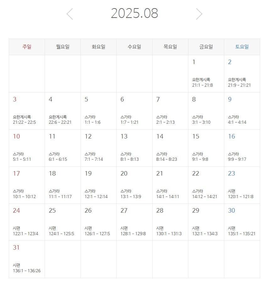 2025년 매일성경:매일성경읽기표(월별 경건읽기표)