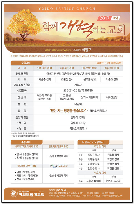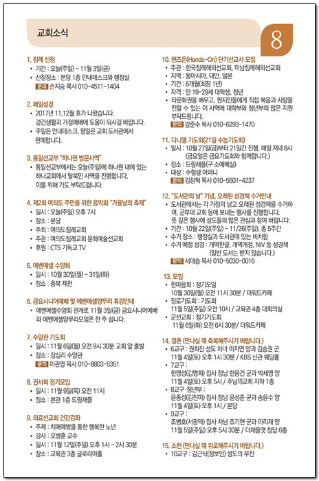 2017년 10월 29일 교회소식