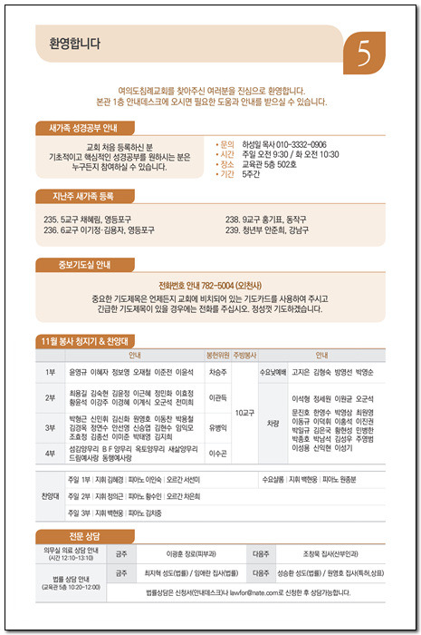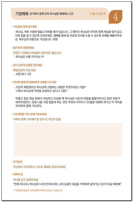 • 기간 : 10월 22일(주일) - 11/26(주일), 총 5주간