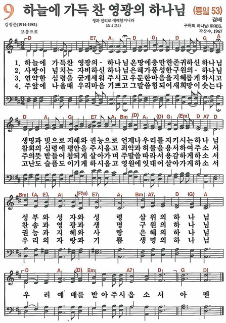찬송가 9장(통일53) 하늘에 가득 찬 영광의 하나님