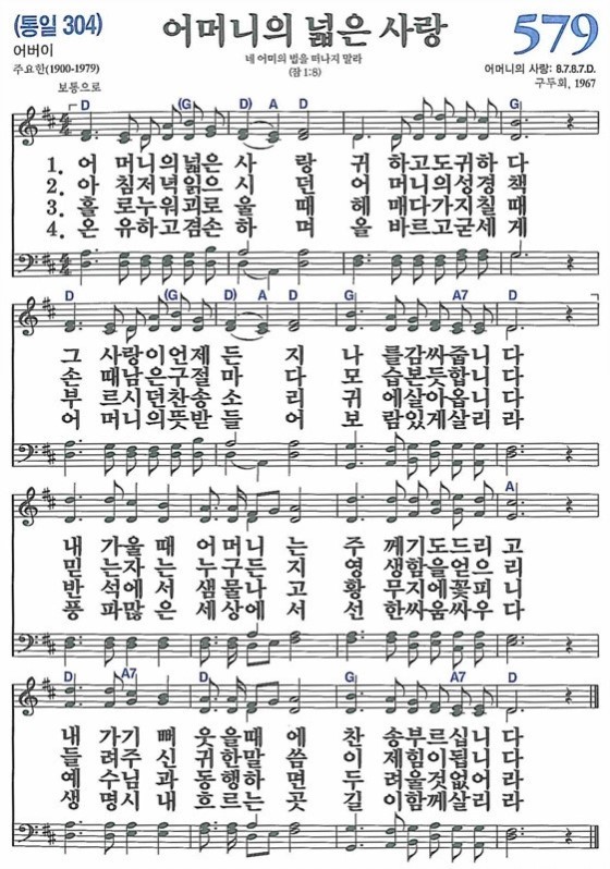 찬송가 579장(통일304) 어머니의 넓은 사랑